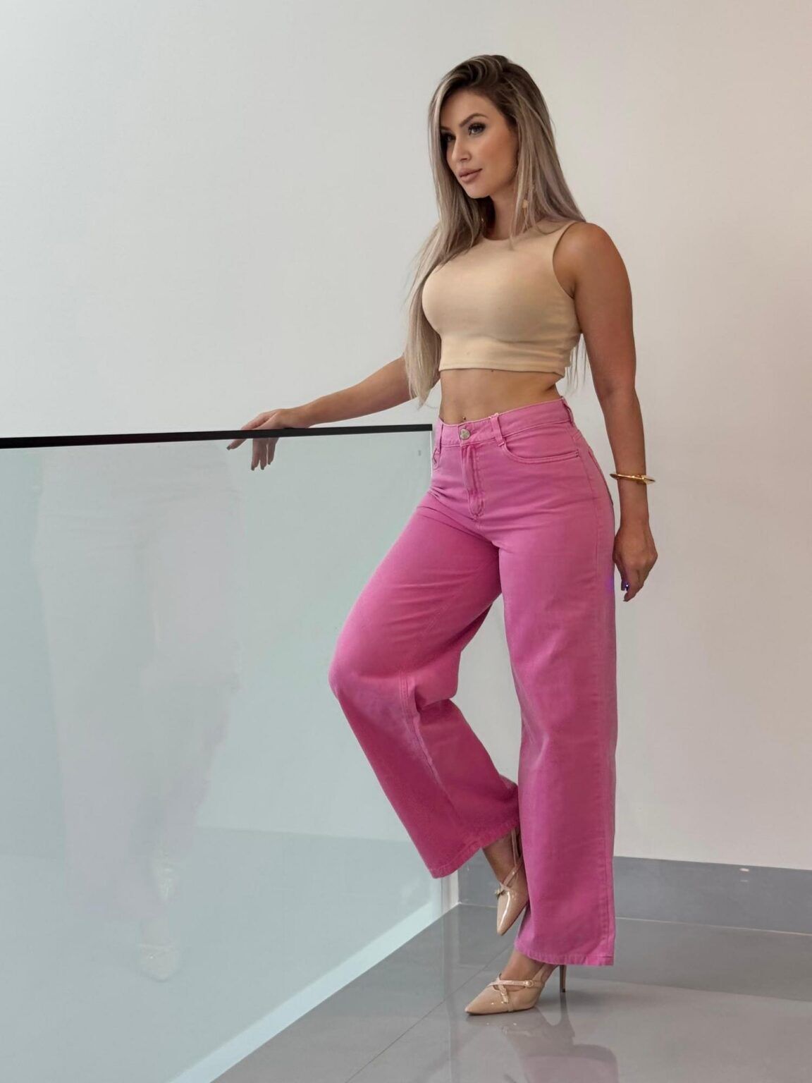 Calça Wideleg 100% algodão,(cintura média), trazendo cores da estação e estilo diferenciado.Unindo conforto e elegância